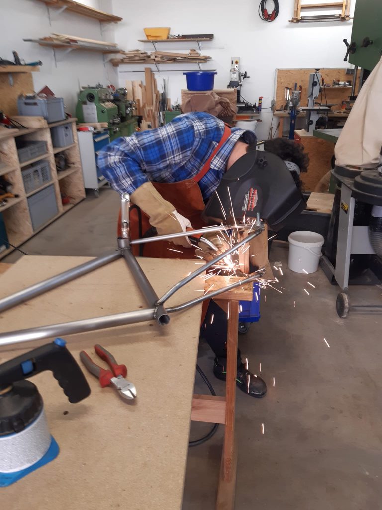 Zusammenschweißen, oder eher brutzeln. Auch wenn die Schweißnähte nicht die schönsten sind, haben sie trotzdem schon 3500 ruppige Kilometer ohne Probleme ausgehalten.